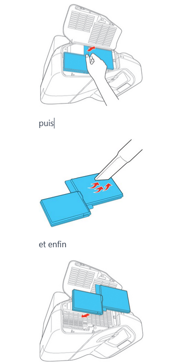 - je passe également un coup d’aspirateur ou de bombe à air dans le logement du filtre et le remets le filtre